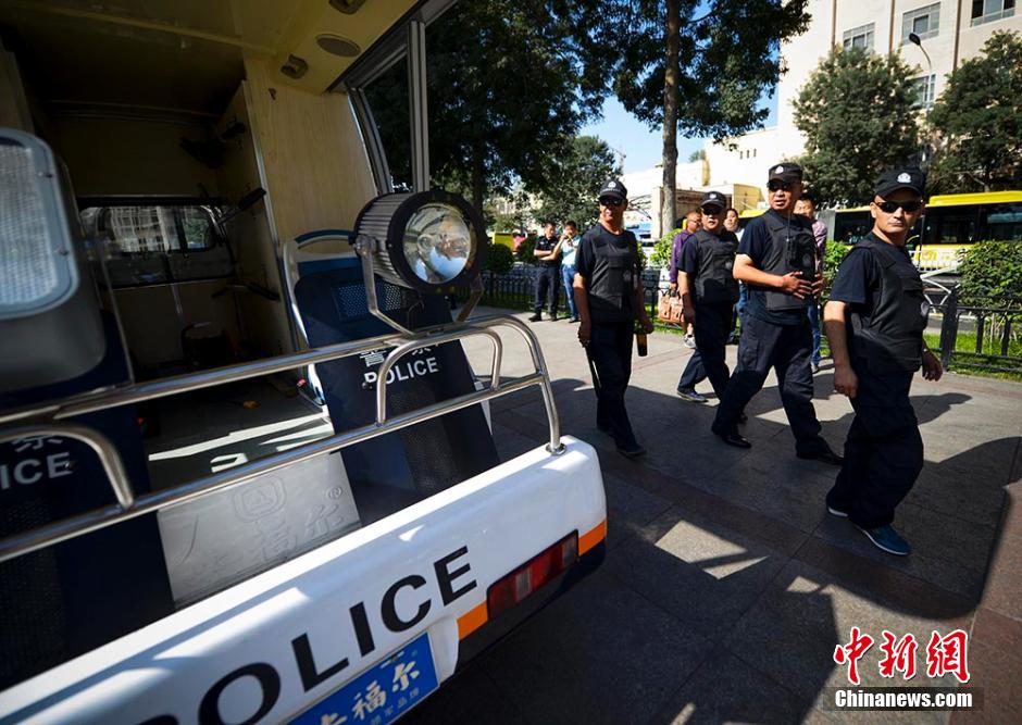 Slide: Anti-terrorism electric patrol car debuts in Xinjiang (2)