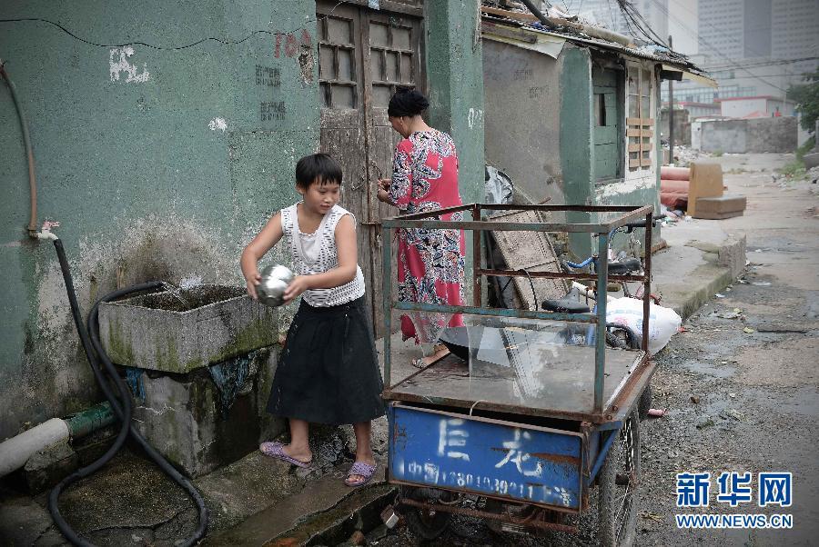 Liu Jing washes dishes after the breakfast, Aug. 25, 2014. (Xinhua News Agency/ Lai Xinlin)