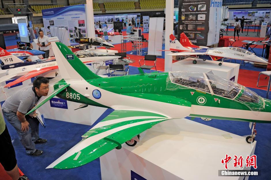 2014 International drones and model aircraft technology and equipment exhibition kicks off in north China's Tianjin on Aug. 29, 2014. More than 70 enterprises from home and abroad specializing in drone research and manufacture participate in the exhibition with advanced products including GPS, telecommunication products etc. This exhibition aims to establish an all-around communication platform and to promote integrated military and civilian development. (CNS/Tong Yu)