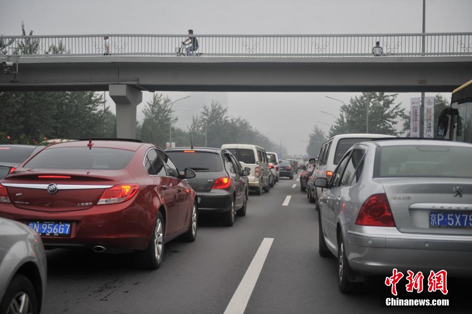 Photo taken on Sept. 1, 2014 shows road congestion in Beijing. Beijing has been urged to use public transport and shun peak hours in September as the Chinese capital braces for the gridlock that comes with the beginning of the school year. At the same time, Beijing's traffic regulator, which has called this month "the most congested" of this year, has forecast that the city's major roads will be congested from 6:45 a.m. on Monday, with the traffic only dying down around noon. (China News Service /Jin Shuo)
