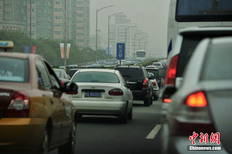Photo taken on Sept. 1, 2014 shows road congestion in Beijing. Beijing has been urged to use public transport and shun peak hours in September as the Chinese capital braces for the gridlock that comes with the beginning of the school year. At the same time, Beijing's traffic regulator, which has called this month "the most congested" of this year, has forecast that the city's major roads will be congested from 6:45 a.m. on Monday, with the traffic only dying down around noon. (China News Service /Jin Shuo)
