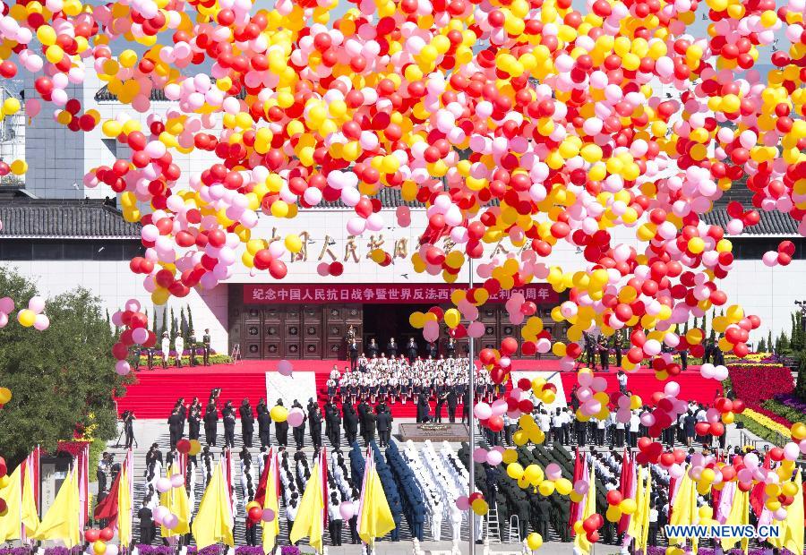 A commemoration marking the 69th anniversary of the victory of the Chinese People's War of Resistance Against Japanese Aggression, is held at the Museum of the War of Chinese People's Resistance Aganist Japanese Aggression, in Beijing, capital of China, Sept. 3, 2014. (Xinhua/Ding Lin)