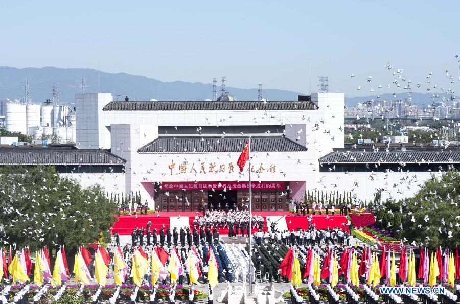 A commemoration marking the 69th anniversary of the victory of the Chinese People's War of Resistance Against Japanese Aggression, is held at the Museum of the War of Chinese People's Resistance Aganist Japanese Aggression, in Beijing, capital of China, Sept. 3, 2014. (Xinhua/Ding Lin)