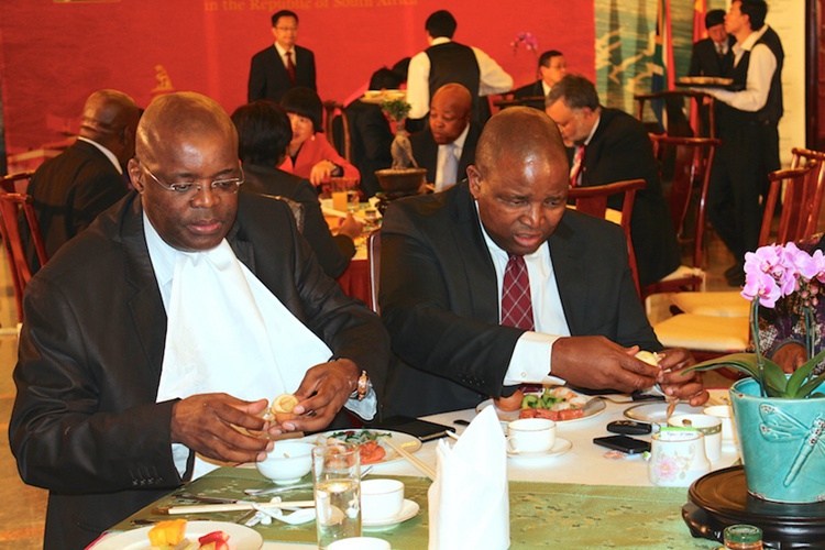 As the traditional Chinese Mid-Autumn Festival is around the corner, the guests taste traditional moon-cakes and typical Chinese breakfast during the event held on the Open Day in China's Embassy to South Africa in Pretoria on Aug. 29, 2014.