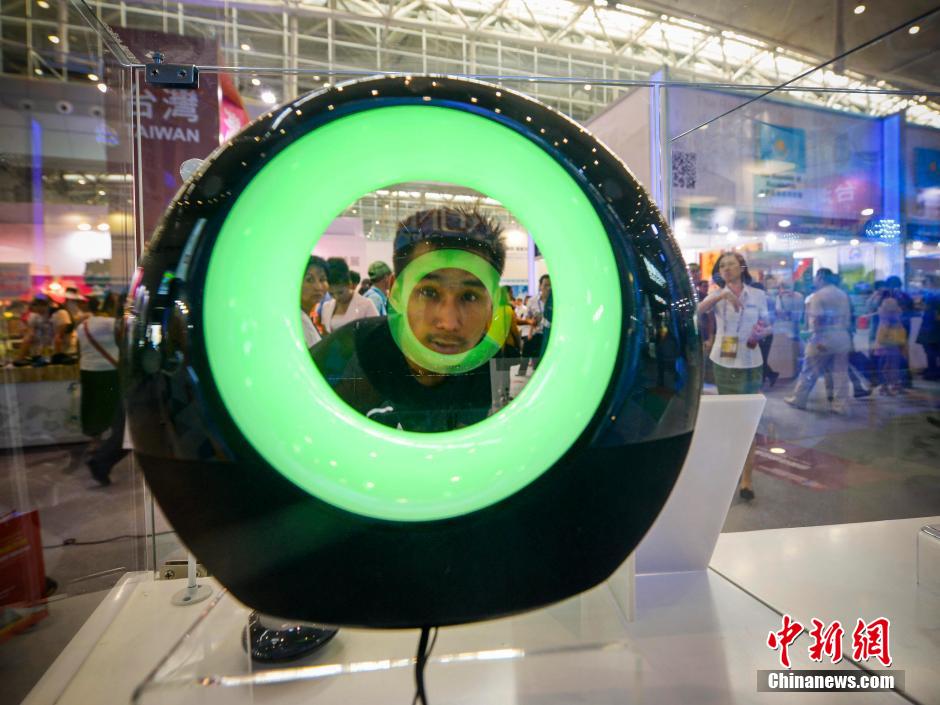 An innovative invention in the Hong Kong Hall attract some young peoples' attention, Sept. 2, 2014. (Chinanews/Liu Xin)