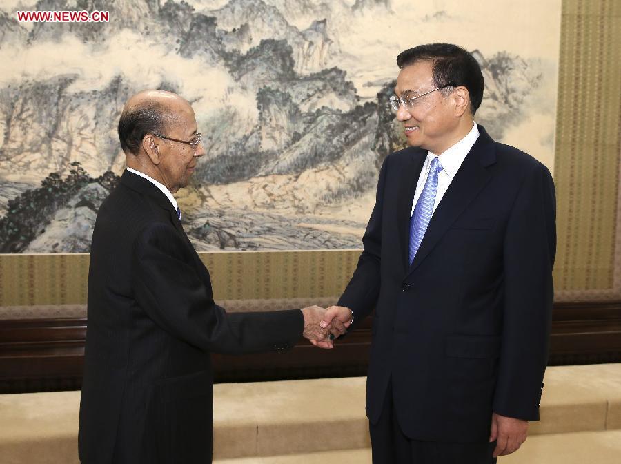 | Chinese Premier Li Keqiang (R) meets with Malaysian Supreme Head of State Abdul Halim Mu'adzam Shah in Beijing, capital of China, Sept. 5, 2014. (Xinhua/Pang Xinglei) |