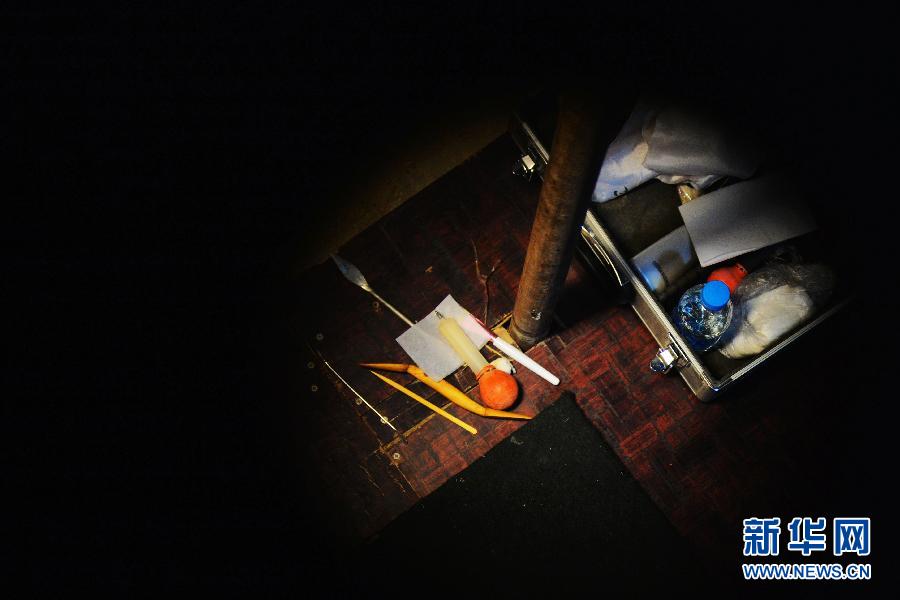 Self-made tools researchers use to repair frescoes. (Xinhuanet/Chen Bin)
