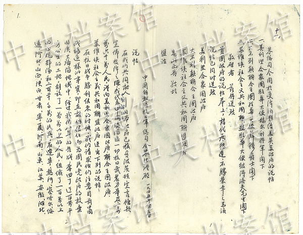 On August 15, 1945, Zhu De sent the letters to the British government, U.S. government and the government of the Soviet Union. (Photo/China's State Archives Administration)