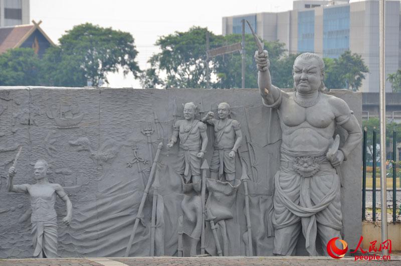 The relief around the monument records treasure voyages. (People's Daily Online/Du Mingming)