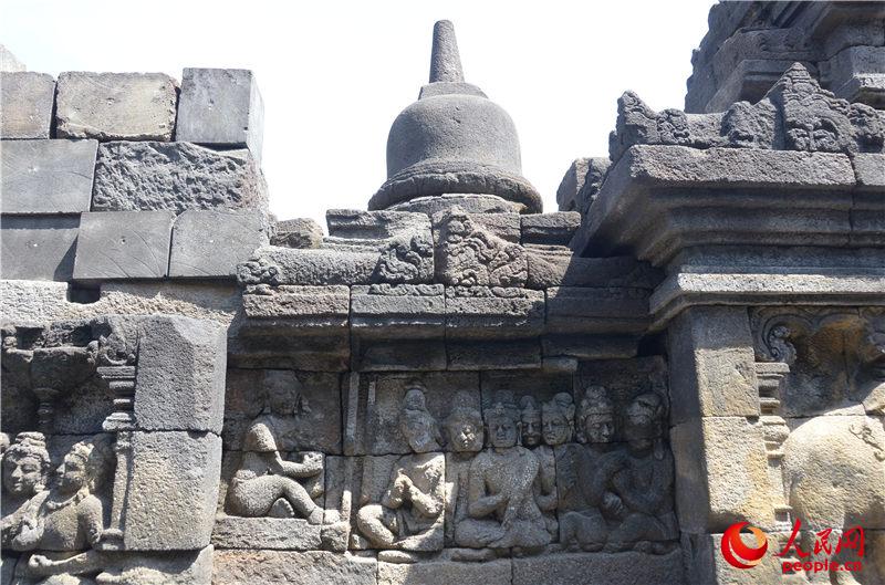 The reliefs on Borobudur present Buddhist stories to visitors. (People's Daily Online/Du Mingming)