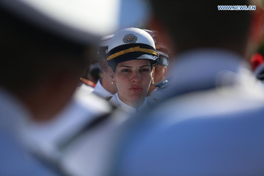 Soldiers take part in a military parade to commemorate the Independence's Day of Brazil, at the Anhembi Sambadrome, in Sao Paulo, Brazil, on Sept. 7, 2014. Brazil celebrated the 192th anniversary of its independence on Sunday. (Xinhua/Rahel Patrasso)