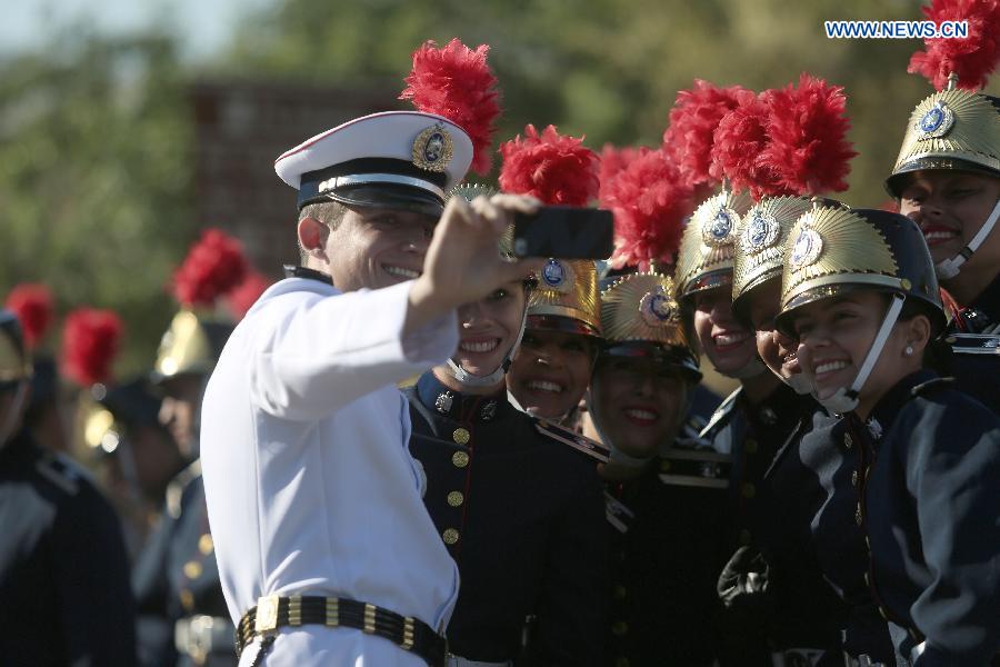 Soldiers take a picture during a military parade to commemorate the Independence's Day of Brazil, at the Anhembi Sambadrome, in Sao Paulo, Brazil, on Sept. 7, 2014. Brazil celebrated the 192th anniversary of its independence on Sunday. (Xinhua/Rahel Patrasso)