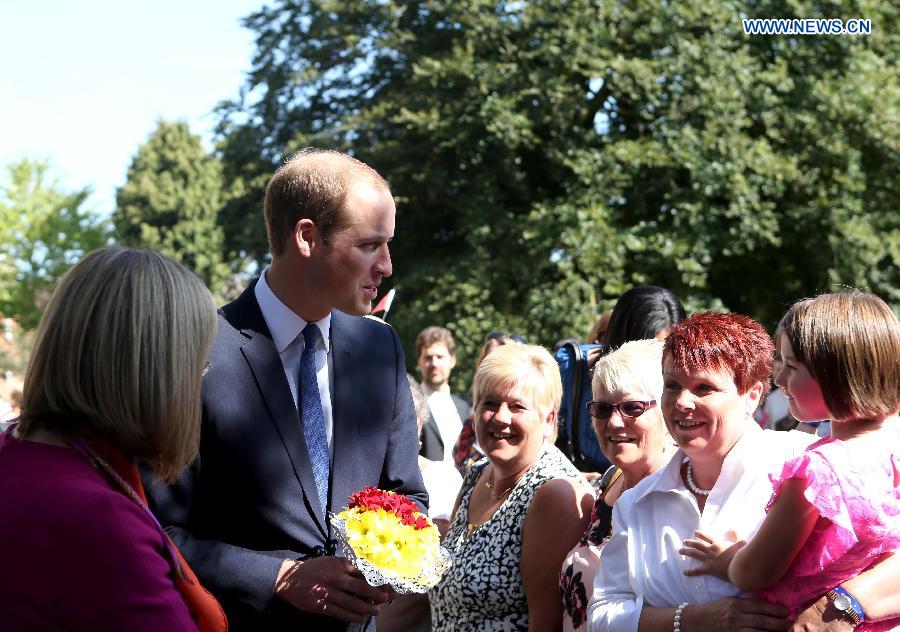 | Prince William (2nd L), Duke of Cambridge, greets well-wishers as he arrives to formally inaugurate the Dickson Poon University of Oxford China Centre Building in Oxford, the United Kingdom, on Sept. 8, 2014. Prince William unveiled the Dickson Poon University of Oxford China Centre here on Monday. (Xinhua/Han Yan) |