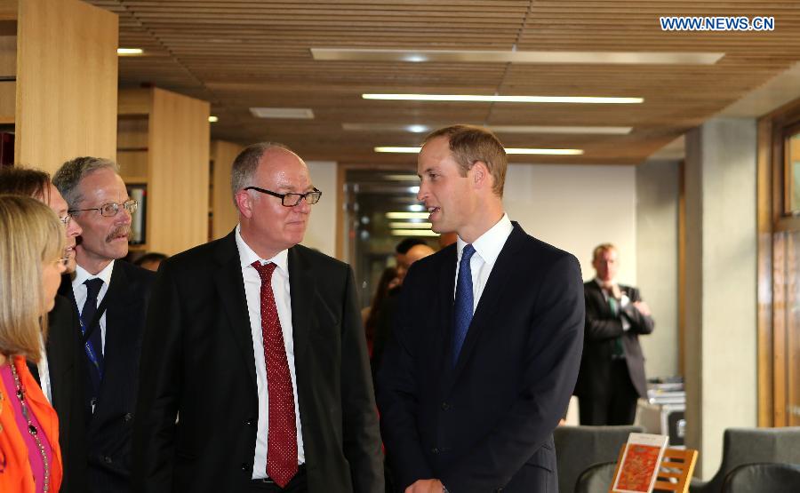 Prince William (R), Duke of Cambridge, visits the library of the Dickson Poon University of Oxford China Centre Building in Oxford, the United Kingdom, on Sept. 8, 2014. Prince William unveiled the Dickson Poon University of Oxford China Centre here on Monday. (Xinhua/Han Yan)