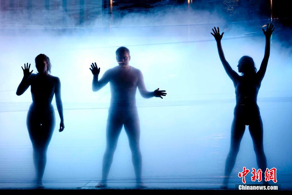 More than 20 artists from Russia, Ukraine and Uganda present Chinese audience with "H2O Show", a vanguard dancing performance at 2014 Beijing Carnival on the night of Mid-Autumn Festival, Sept. 8, 2014. (CNS/Lu Xin)