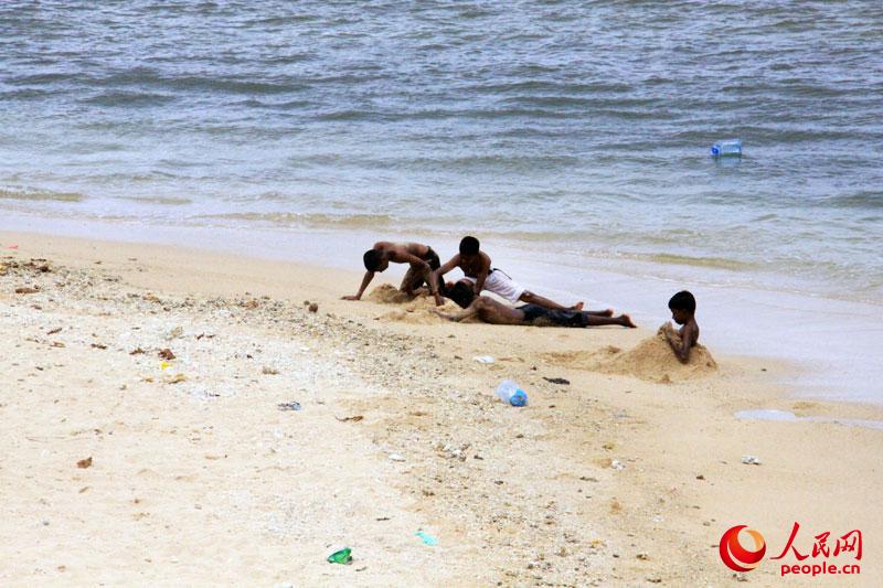 Children play on the beach. (Photo/People's Daily Online)