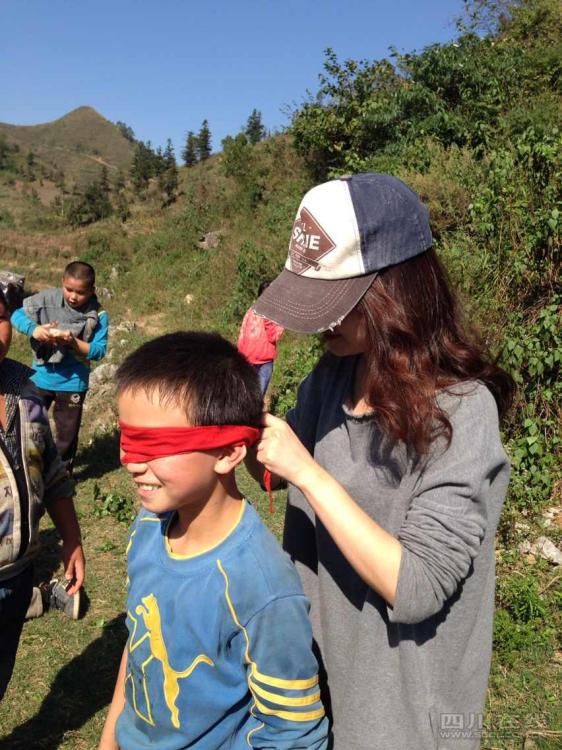 Zhu Jing plays games with her students.(scol.com.cn/ Fang Wei)