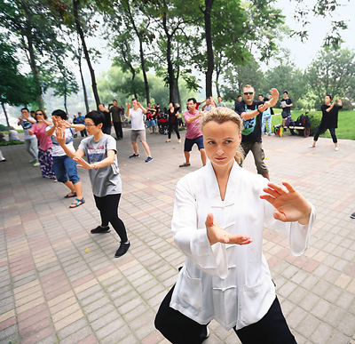 | Foreign sinologists learn shadow boxing in Yuan Dynasty City (People’s Daily/Lu Xu) |