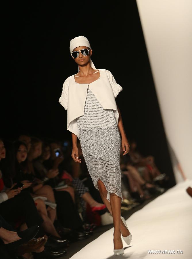 A model presents a creation by designers from Academy of Art University during the 2015 New York Fashion Week in New York, the United States, on Sept. 6, 2014. (Xinhua/Qin Lang)