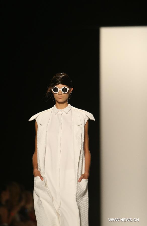 A model presents a creation by designers from Academy of Art University during the 2015 New York Fashion Week in New York, the United States, on Sept. 6, 2014. (Xinhua/Qin Lang)