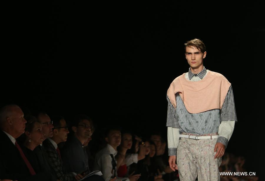 A model presents a creation by designers from Academy of Art University during the 2015 New York Fashion Week in New York, the United States, on Sept. 6, 2014. (Xinhua/Qin Lang)