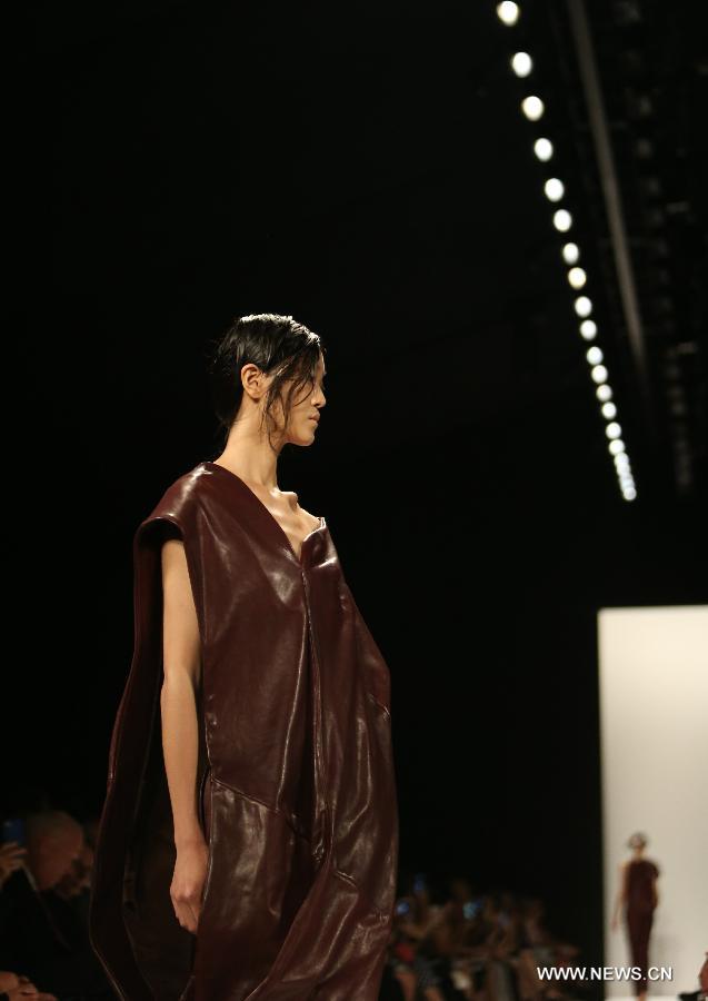 A model presents a creation by designers from Academy of Art University during the 2015 New York Fashion Week in New York, the United States, on Sept. 6, 2014. (Xinhua/Qin Lang)