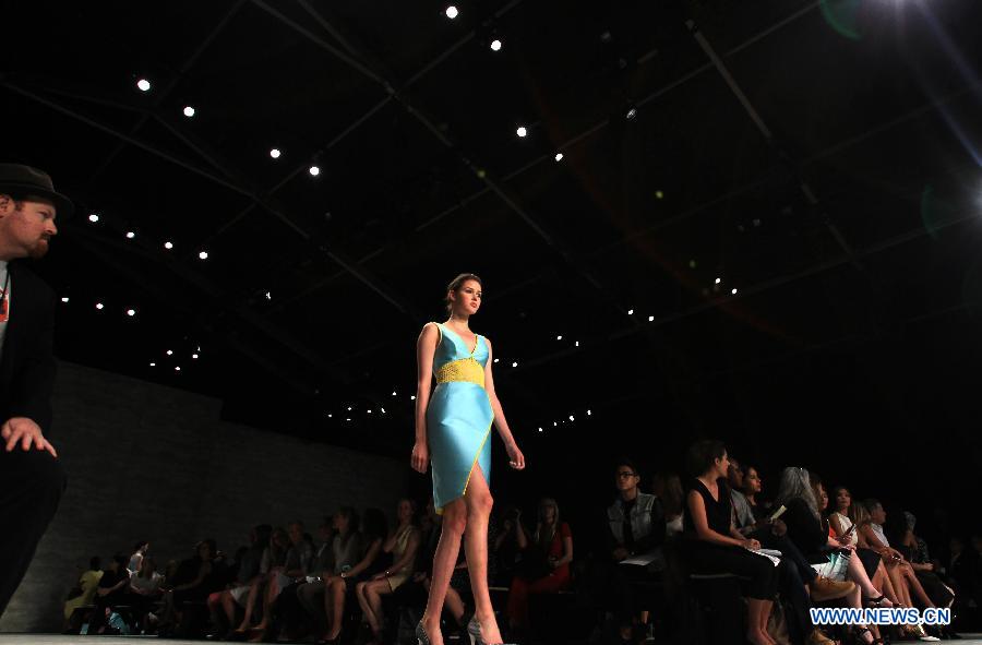 A Model presents a creation of the Spring/Summer 2015 ANGEL SANCHEZ collection during the New York Fashion Week in New York, the United States, Sept. 8, 2014. (Xinhua/Cheng Li)