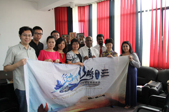Abeysekera and journalists of People's Daily Online. (People's Daily Online/Li Luying)