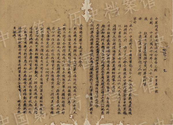 From August 21 to September 5, 1945, the Chinese Army Headquarters in Chinese theatre of World War II sent out a memo to Yasuji Okamura, Commander-in-Chief of the China Expeditionary Army.(Photo/Second Historical Archives of China)