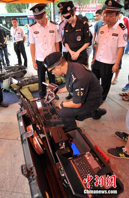 Anti-terror devices exhibition is held in Fuzhou, southeast China's Fujian province on Sept. 11, 2014. (CNS/Lv Ming)