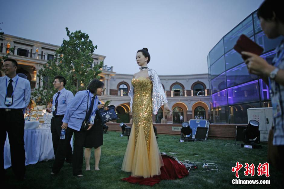 A robot “beauty” attracts much attention at the Davos forum in Tianjin Minyuan Stadium where the cultural night of the Dovos 2014 summer Forum is held. Guests from home and abroad experienced the charm of Tianjin by tasting local foods and enjoying artistic performances. (Chinanews.com/Tong Yu)