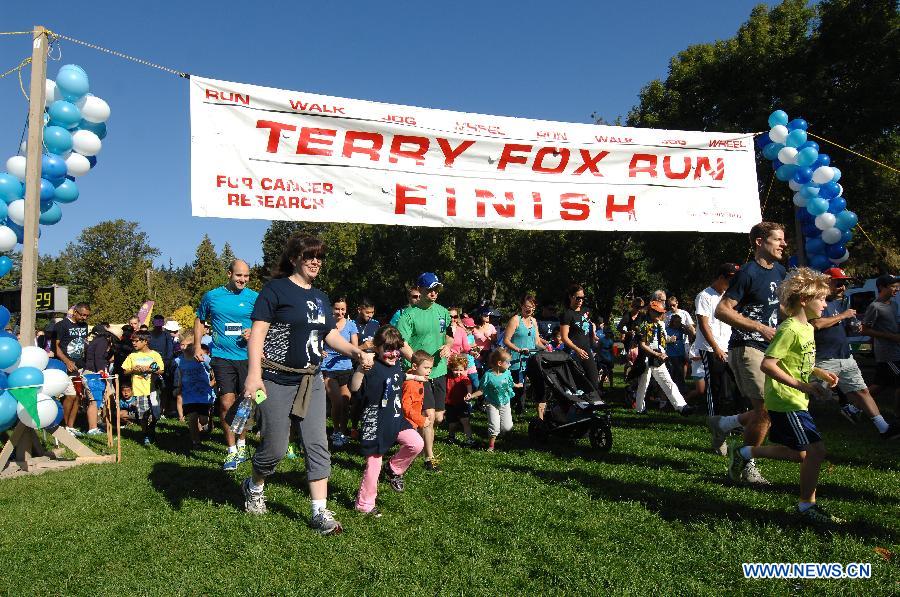 Runners take part in The Terry Fox Run 2014 in Stanley Park in Vancouver, Canada, on Sept. 14, 2014. Thousands of participants pounded the pavement for the 34th time to raise money for the fight against cancer and to honour the legacy of Terry Fox and his Marathon of Hope. (Xinhua/Sergei Bachlakov)