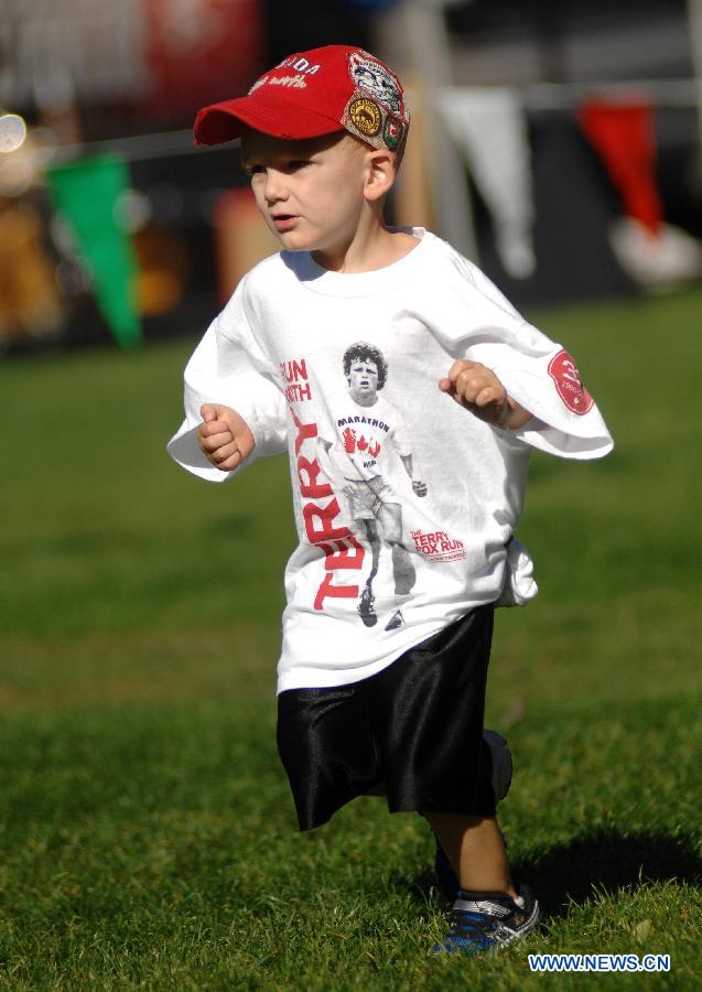 A boy runs in The Terry Fox Run 2014 in Stanley Park in Vancouver, Canada, on Sept. 14, 2014. Thousands of participants pounded the pavement for the 34th time to raise money for the fight against cancer and to honour the legacy of Terry Fox and his Marathon of Hope. (Xinhua/Sergei Bachlakov)