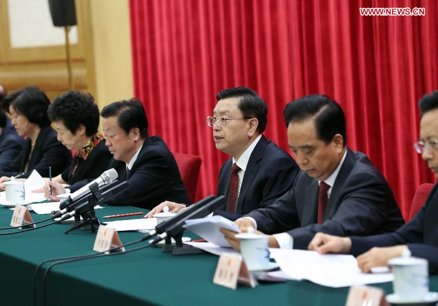 Zhang called on authorities to earnestly fulfill the duties endowed by the Constitution and law and make new contributions to the development of socialist democracy.