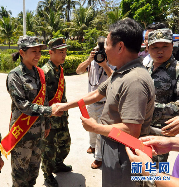 Xiao Jie, the mayor and the Party chief of Sansha City, issued admission notice to Feng Leini. (WWW.NEWS.CN/Xia Yifang)