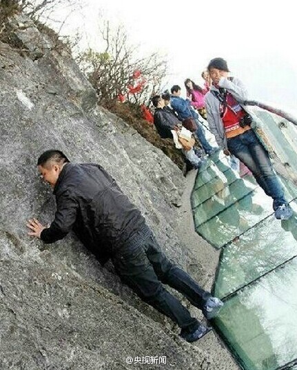 The construction of the longest, widest, and highest glass suspension walkway in China is to be completed soon in Baishi Mountain Resort, Laiyuan county of north China’s Hebei province, according to sources from the resort. It is estimated that the walkway will be open to public in the middle of September 2014.  (Photo/Weibo)