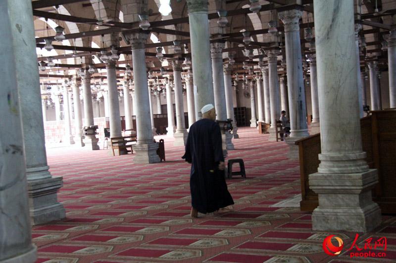 Photo taken on Sept. 14, 2014 shows interior view of the mosque in the city of Cairo, capital of Egypt. The team reporting the "New Silk Road" from People's Daily Online arrived in the city of Cairo on the day. (Photo/People's Daily Online)