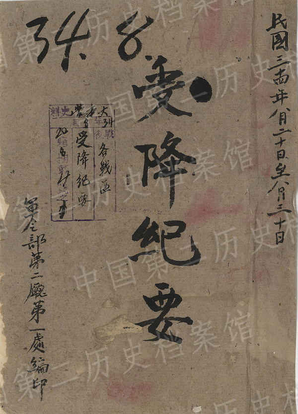 In August 1945, the Board of Military Operations of the Republic of China compiled the records on accepting Japanese surrender in August 1945. (Photo/Second Historical Archives of China)