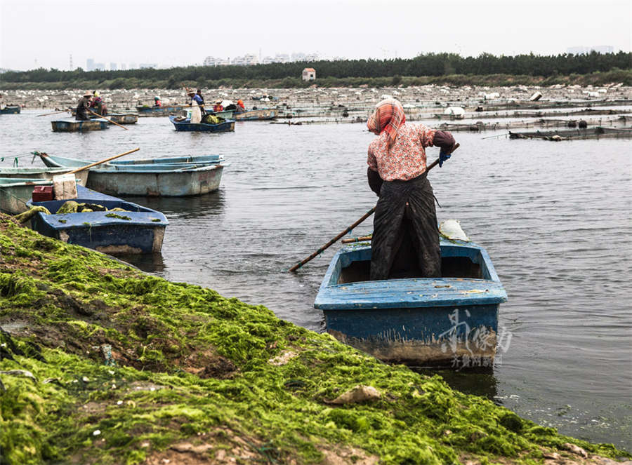 A woman works on a boat. Boats are necessary instruments for offshore operation. (www.iqilu.com/ Feng Xingcai)