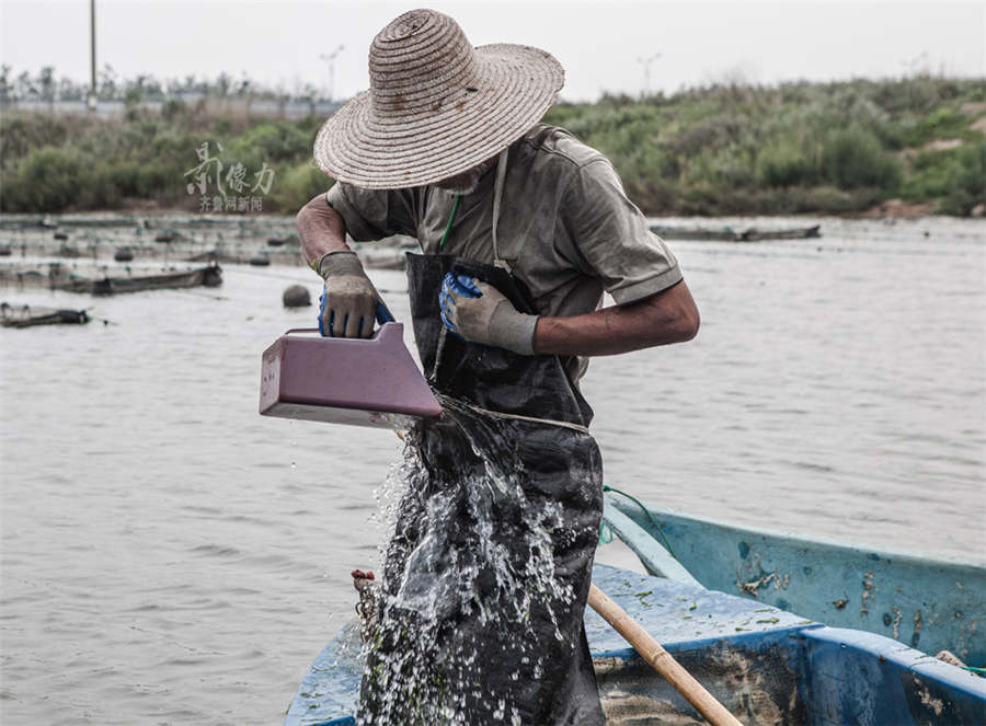A worker cleans his work clothes. (www.iqilu.com/ Feng Xingcai)