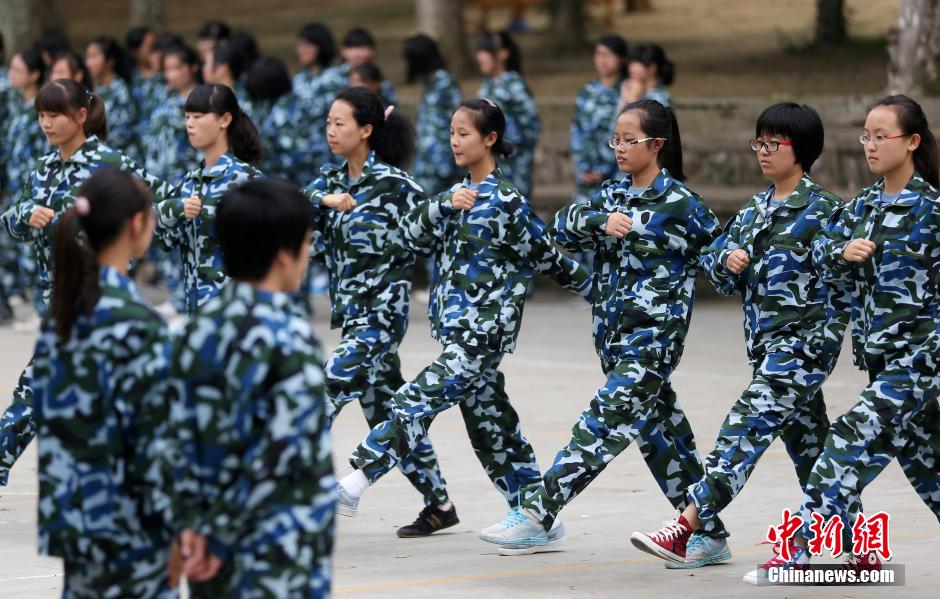 Female freshmen participate in military training in Nanjing. (CNS/Yang Bo)