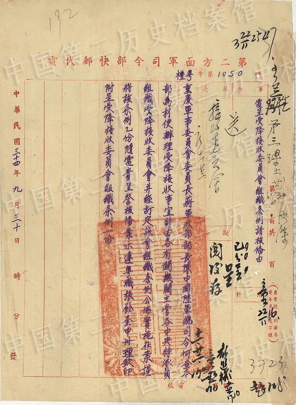 The organization rules of the Takeover Commission of Chinese 2nd Front Army. (Photo/Second Historical Archives of China)