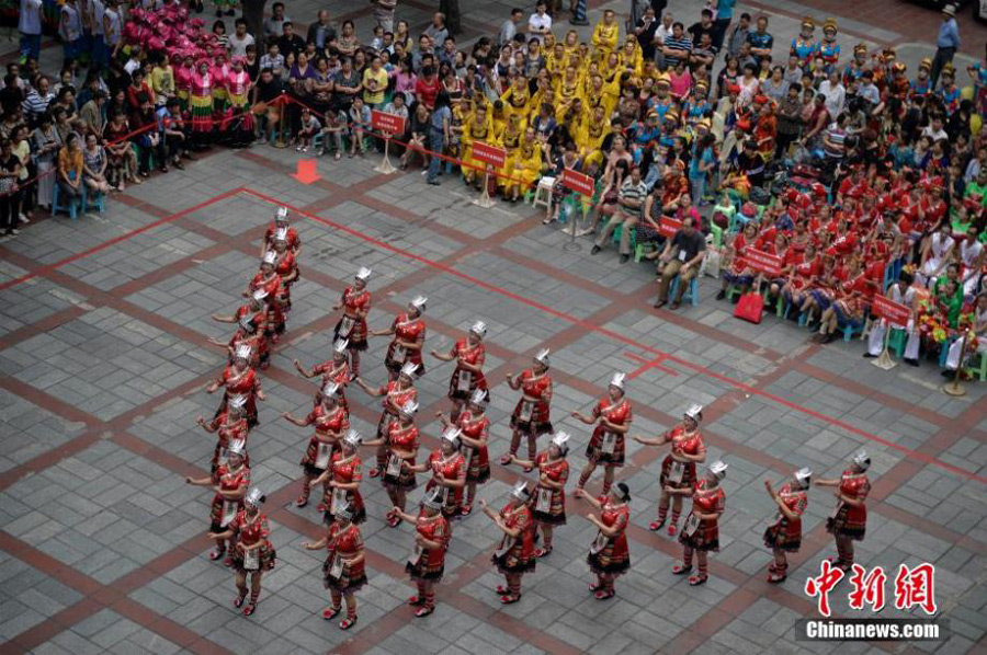 Shimmying, circling, belly waving, damas in ShapingBa, Chongqing, battle in a fierce dancing contest held by the local government, on September 16, 2014. The contest was specially designed for senior citizens and has successfully attracted 15 local square dance teams to participate in. With their excellent dancing skills and fancy props, the damas gave an absolute visual feast to the audience. (China News Agency/Yu You)