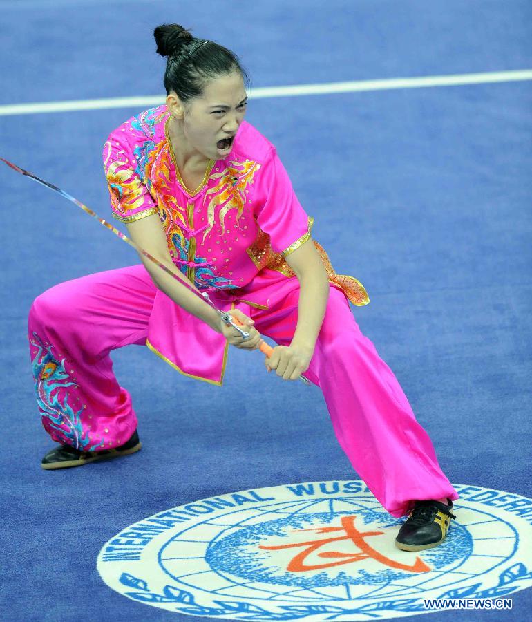 Wei Hong of China performs during the nandao competition of women's nanquan\nandao all-round Wushu event at the 17th Asian Games in Incheon, South Korea, Sept. 20, 2014. Wei Hong got the bronze medal with 19.15 points. (Xinhua/Gong Lei)