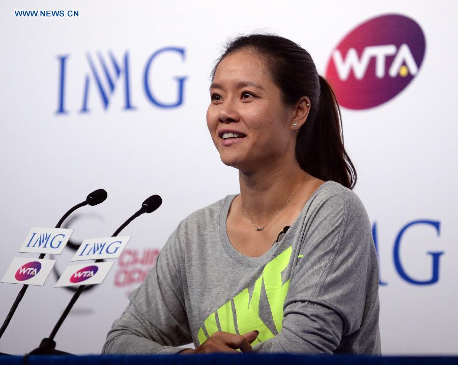 Chinese famous tennis player Li Na answers questions during her retirement press conference in Beijing, capital of China, Sept. 21, 2014. China's first and only Grand Slam winner Li Na formally announced her retirement on Sept. 19, leaving Chinese tennis yearning for the next superstar. (Xinhua/Chen Yehua)