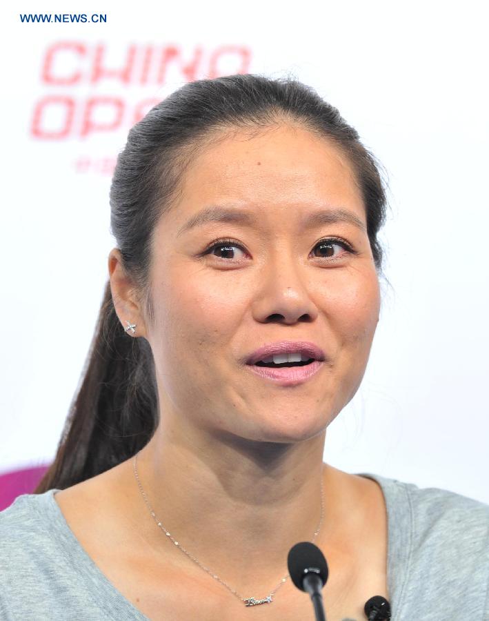 Chinese famous tennis player Li Na reacts during her retirement press conference in Beijing, capital of China, Sept. 21, 2014. China's first and only Grand Slam winner Li Na formally announced her retirement on Sept. 19, leaving Chinese tennis yearning for the next superstar. (Xinhua/Li Wen)