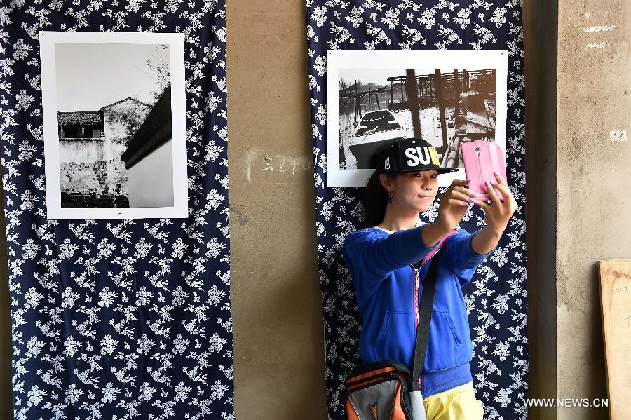 A tourist takes photos of herself with a mobile phone during the Pingyao International Photography Festival in Pingyao County, north China's Shanxi Province, Sept. 20, 2014. With the popularization of mobile phone cameras, mobile phone photography plays an important role in daily life. (Xinhua/Zhan Yan)
