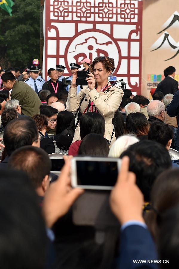 | A foreigner takes photos with a mobile phone at the opening ceremony of Pingyao International Photography Festival in Pingyao County, north China's Shanxi Province, Sept. 19, 2014. With the popularization of mobile phone cameras, mobile phone photography plays an important role in daily life. (Xinhua/Zhan Yan) |