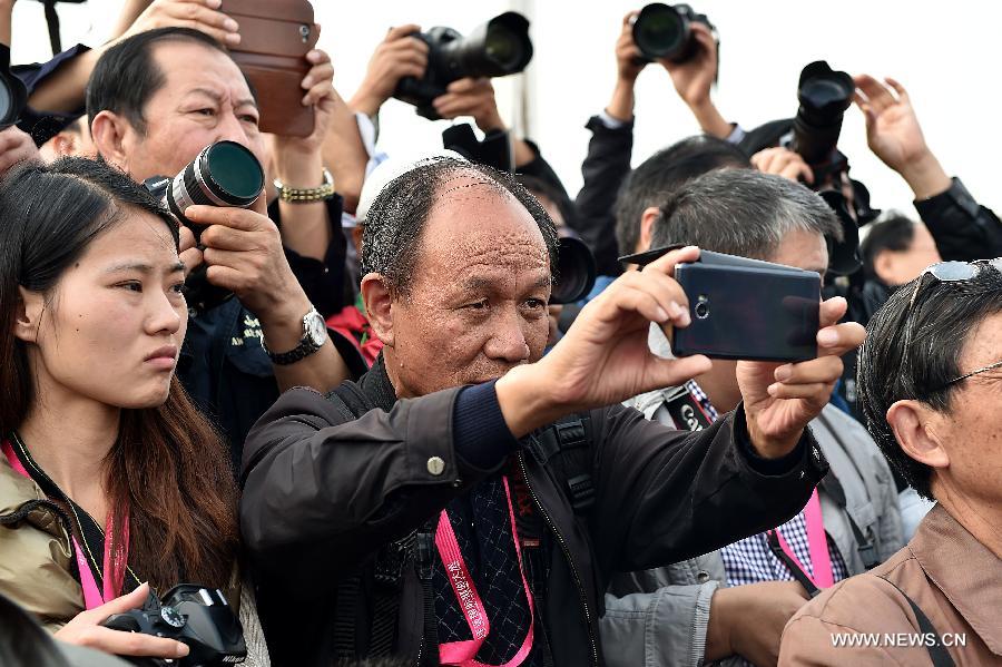 A tourist takes pictures of the opening ceremony of Pingyao International Photography Festival with a mobile phone in Pingyao County, north China's Shanxi Province, Sept. 19, 2014. With the popularization of mobile phone cameras, mobile phone photography plays an important role in daily life. (Xinhua/Zhan Yan)