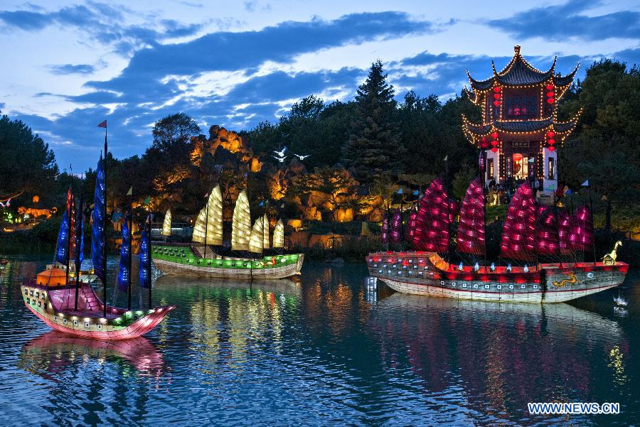 Lantern works are seen at the Botanical Gardens, Montreal, Canada, on Sept. 20, 2014. (Xinhua/Andrew Soong)